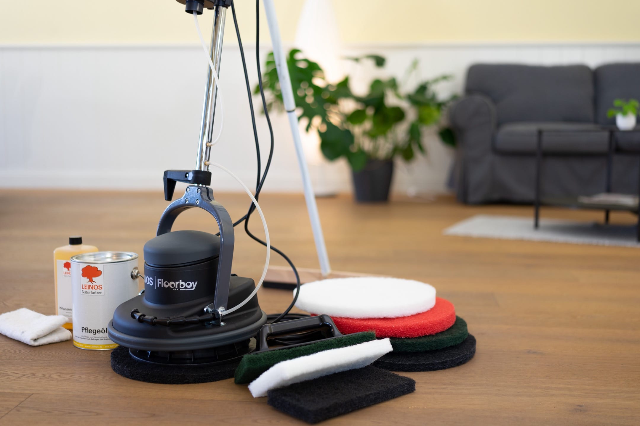 Doch aufgrund allgemein gestiegener Kosten, Handwerkermangel, fehlender Rohstoffe usw. wird es für Sie als Endkunden nicht leichter den Bestandsboden reinigen und pflegen zu lassen. Es muss also eine Lösung her, die es unseren Kunden erlaubt, geölte Böden in den eigenen vier Wänden wieder einfach und kostengünstig zum Strahlen zu bringen und andere Glattbeläge professionell zu reinigen und zu pflegen. Und für genau diesen Zweck haben wir für Sie den LEINOS Floorboy Verleihservice in's Leben gerufen.