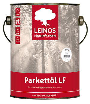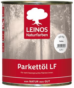Das Parkettöl LF mit einem Doppelflächen-Spachtel einmal gleichmäßig auftragen (ca. 15-30 ml/m², je nach Saugfähigkeit des Holzes). Dann mit einer Einscheibenpoliermaschine und grünem Pad gründlich einpadden und mit einem weißen Pad die Oberfläche auspolieren. Bei stark belasteten bzw. besonders saugfähigen Böden am nächsten Tag einen zweiten Auftrag sparsam durchführen. Nach 20-30 Minuten die Oberfläche mit weißem Pad auspadden. Schichtbildung unbedingt vermeiden! Zu beachten: Böden müssen fugenfrei verlegt sein oder sind ggf. abzuspachteln. Wenn Fugen vorhanden sind, kann es zu Ölaustritt oder zu Geräuschentwicklung beim Begehen kommen.