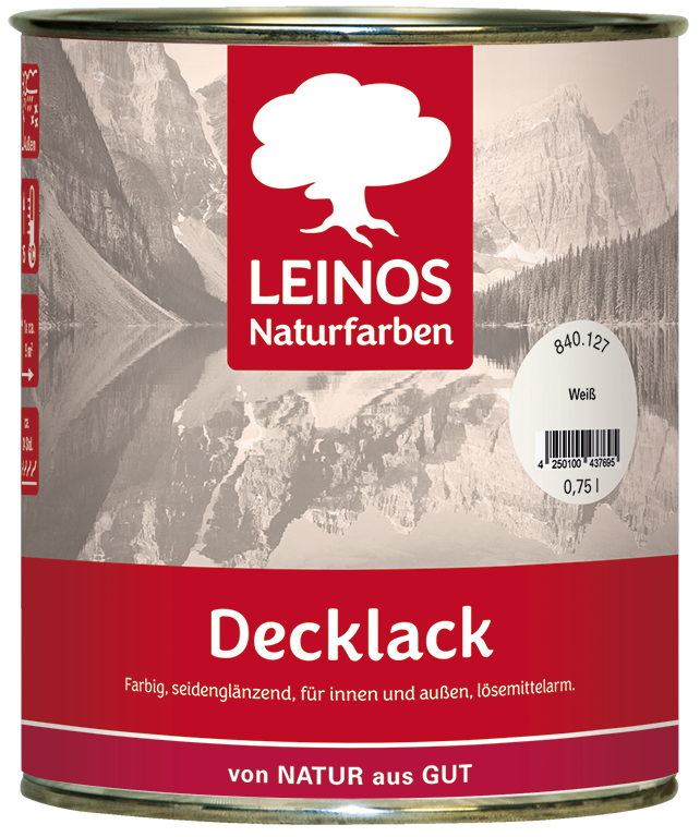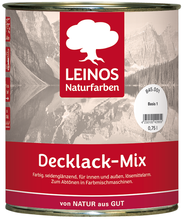 Mix-Variante des LEINOS Decklack zum Abtönen in Farbmischmaschinen. Farbig, seidenglänzend, für innen und außen.